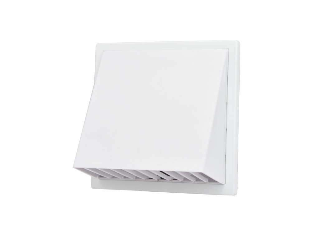 - Plastová větrací mřížka se stříškou, přírubou a klapkou
