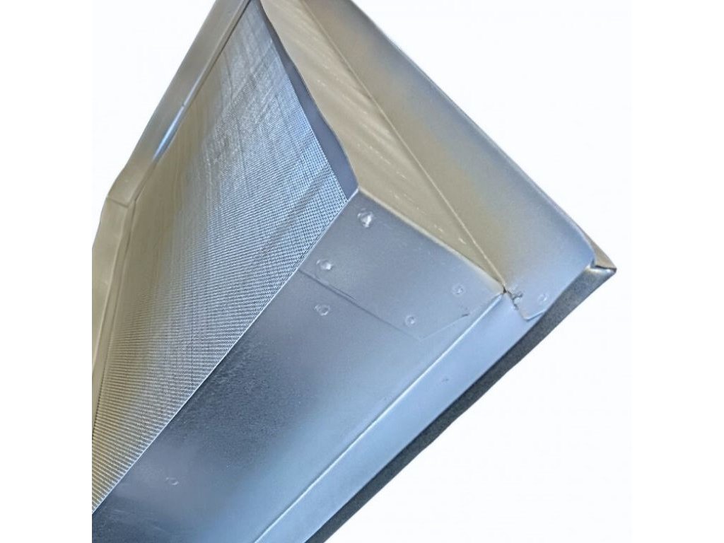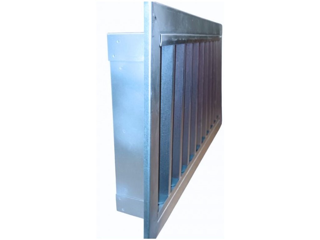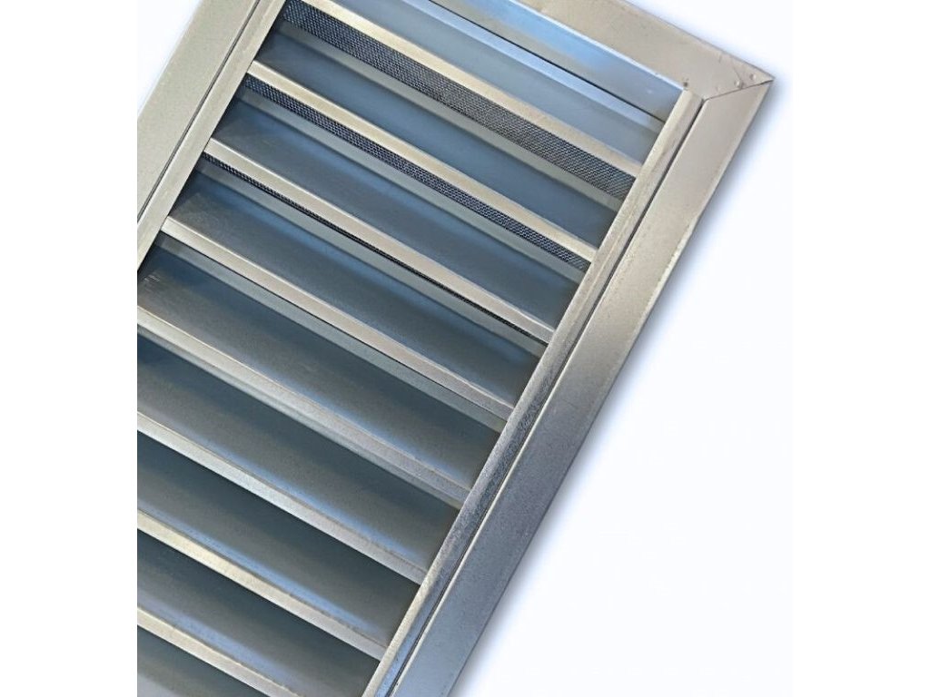 Protidešťová žaluzie - materiál pozinkovaný plech, hrubá síť, snadno přizpůsobitelné díky možnosti lakování RAL, zakryje stavební otvory, užívané pro (obytné, kancelářské či průmyslové objekty), rozměry 300 × 600 mm (Š×V), hmotnost 4 kg