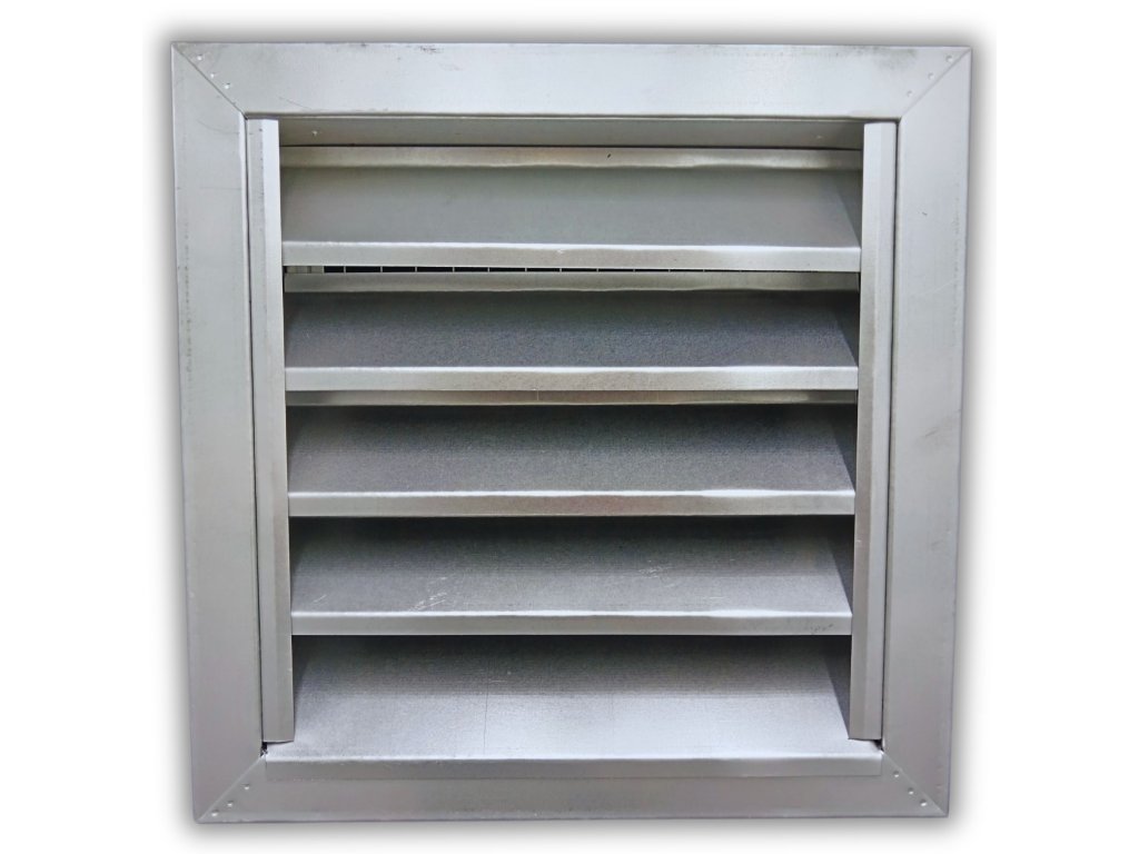Protidešťová žaluzie - materiál pozinkovaný plech, hrubá síť, efektivní plocha sef 0,0466 m², snadno přizpůsobitelné díky možnosti lakování RAL, zakryje stavební otvory, užívané pro (obytné, kancelářské či průmyslové objekty), rozměry 315 × 315 mm (Š×V), hmotnost 2,4 kg