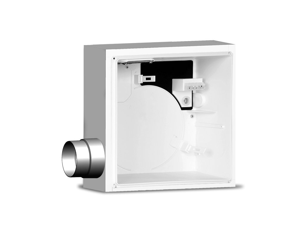Instalační krabice pro VORT QUADRO EVO pro nástěnnou nebo stropní montáž, se zpětnou klapkou, s vývodem dozadu