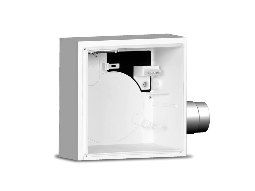 Instalační krabice pro VORT QUADRO EVO pro nástěnnou nebo stropní montáž, se zpětnou klapkou, s vývodem dozadu