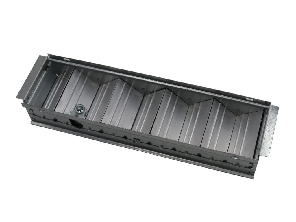 Nastavitelná regulace R1 1200x125 slouží k regulaci průtoku vzduchu. Regulace je určena pro vyústky a mřížky KVK, KVP, MSU, VKE, VPE a také pro multidýzy MZL-KV o rozměru 1200x125 mm. R1 je vyrobena z pozinkované oceli opatřená regulačními listy s jednotným nastavitelným úhlem.