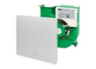 Kvalitní radiální ventilátor do koupelny s kuličkovými ložisky, zpětnou klapkou, zabudovaným filtrem, časovým doběhem, vhodný k montáži do stěny, pod omítku.