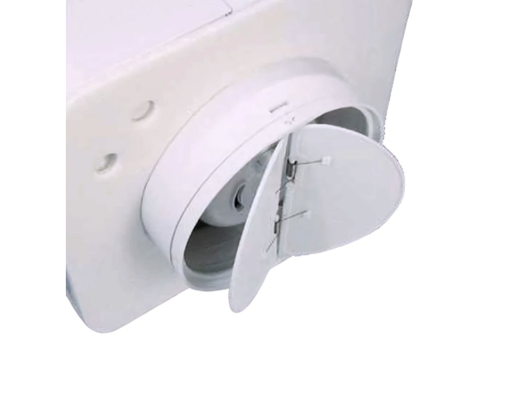 Vně ventilátoru naleznete zpětnou klapku, která brání vstupu nezvaných hostů (hmyzu, ptáků) a nečistot z potrubí do domu. Při nečinnosti ventilátoru se automaticky uzavře.