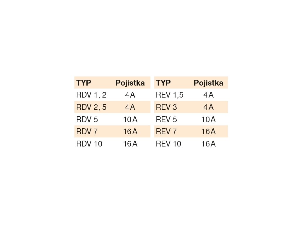 napájecí napětí: 230 V (REV), 400 V (RDV)