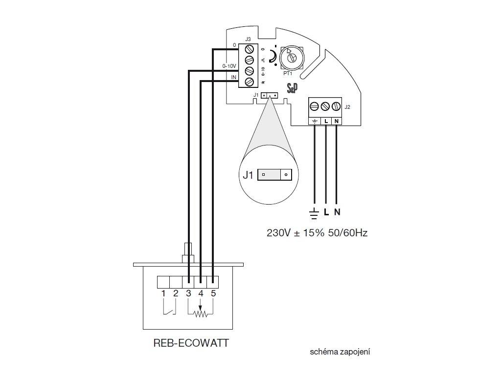 Regulace otáček se provádí pomocí potenciometru umístěného ve svorkovnici nebo externím ovládáním REB-Ecowatt. Dále analogovým vstupem 0–10 V od čidla teploty, vlhkosti nebo CO2.