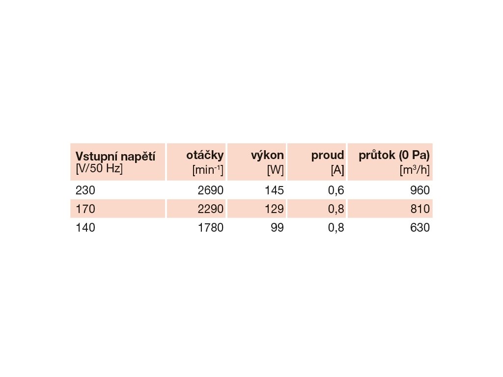 Průtok (0 Pa) (m3/h): | 960 |
