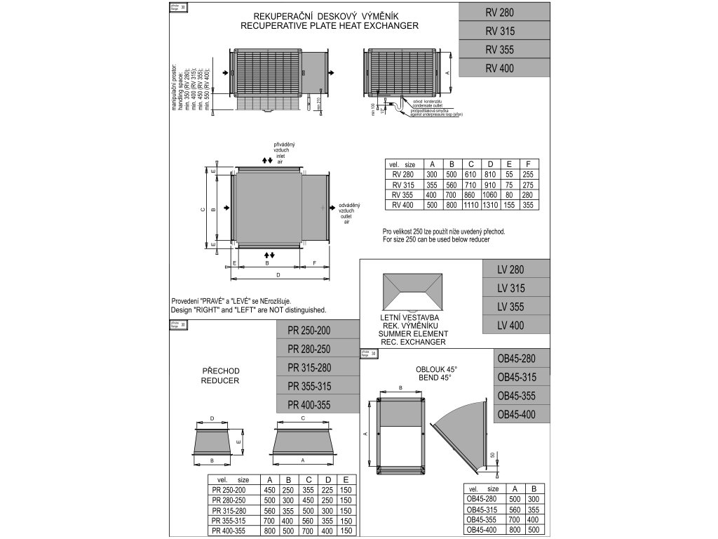 Pro zvýšení variabilnosti instalace deskového výměníku jsou k dispozici 45° oblouky daného průřezu (označení OB-45) a přechody označené PR. Toto příslušenství se objednává zvlášť.