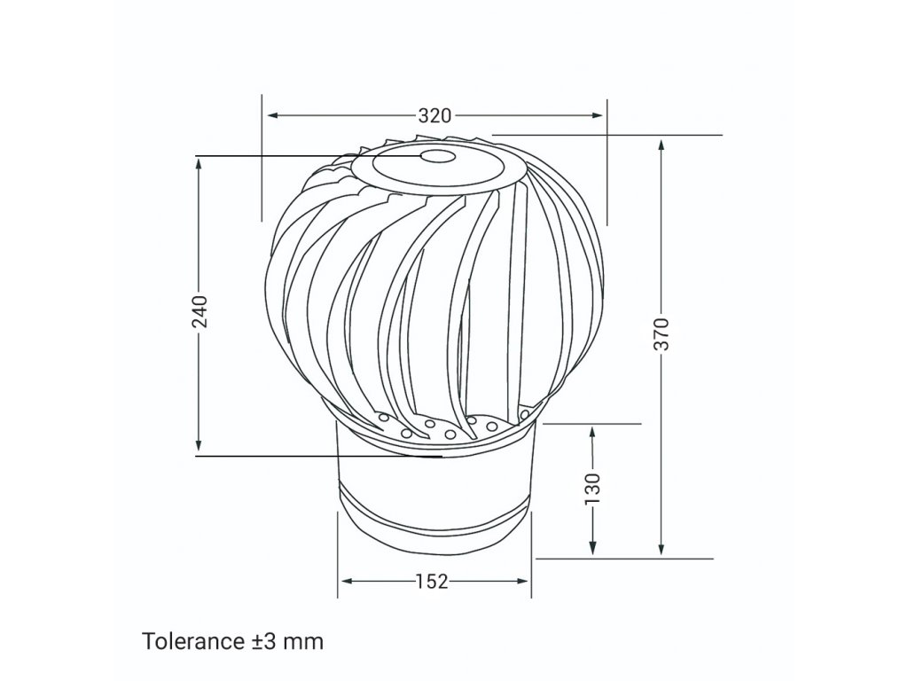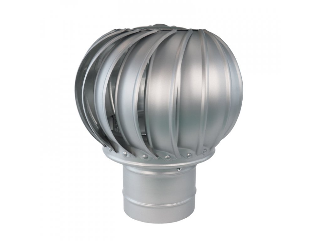 Rotační ventilační turbína Skyaxis pro odvětrání střešních plášťů, kanalizačního potrubí, průmyslových hal, atp. Vhodná pro průměr potrubí 150 mm. Jediná turbína na českém trhu, která je vyrobena z revolučního materiálu FCPC. Rotační ventilační hlavice SkyAxis je vyrobena z vysoce kvalitního hliníku #3005, který je potažen modifikovaným teflonem. Spojením těchto dvou materiálů vznikl nový velmi odolný materiál FCPC, který zaručuje turbínám SkyAxis vysokou mechanickou odolnost a stálý vzhled.