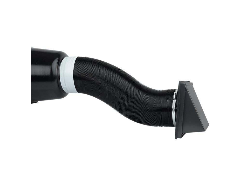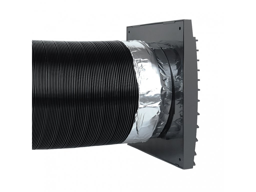 Ohebné vzduchotechnické potrubí - Semiflex Black, ⌀ 150 mm (průměr potrubí), vysoká mechanická odolnost, materiál AI fólie, balení 3 m (při dodání stlačené na 30-40% délky), matně černá, provozní teplota ~ -30 až +200 °C, není vhodné pro odtah spalin, tloušťka 0,6 mm, lze užít jako designové řešení kuchyní/interiéru, restaurací, kaváren nebo coworking prostor