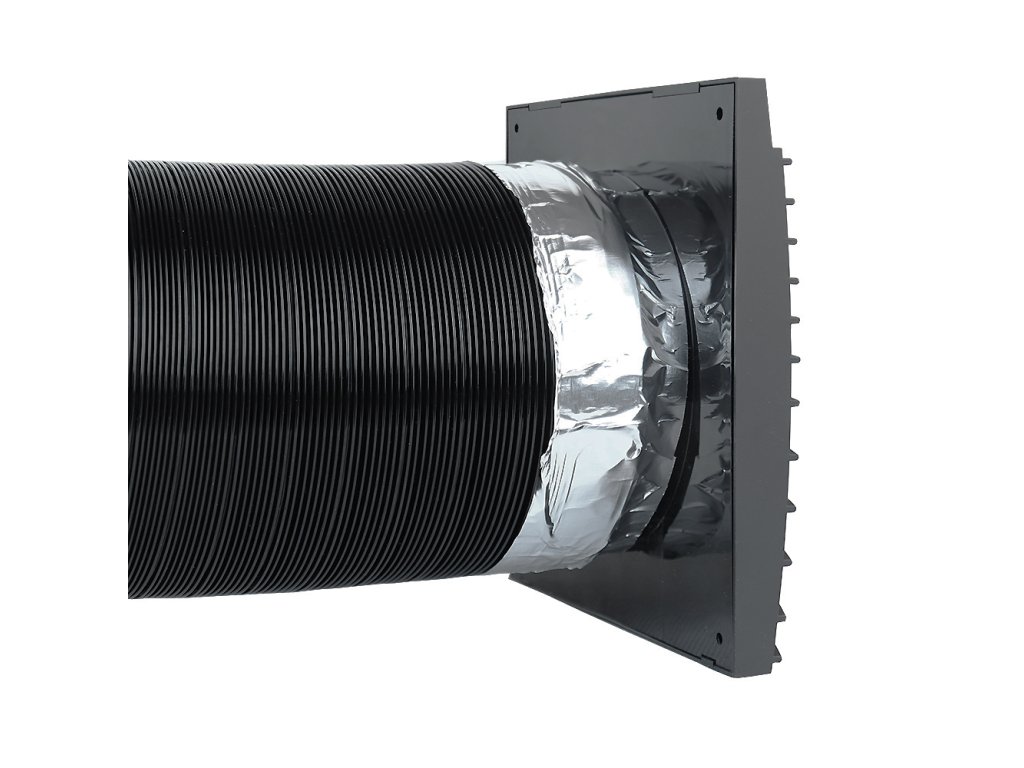 Ohebné vzduchotechnické potrubí - Semiflex Black, ⌀ 80 mm (průměr potrubí), vysoká mechanická odolnost, materiál AI fólie, balení 3 m (při dodání stlačené na 30-40% délky), matně černá, provozní teplota ~ -30 až +200 °C, není vhodné pro odtah spalin, tloušťka 0,6 mm, lze užít jako designové řešení kuchyní/interiéru, restaurací, kaváren nebo coworking prostor