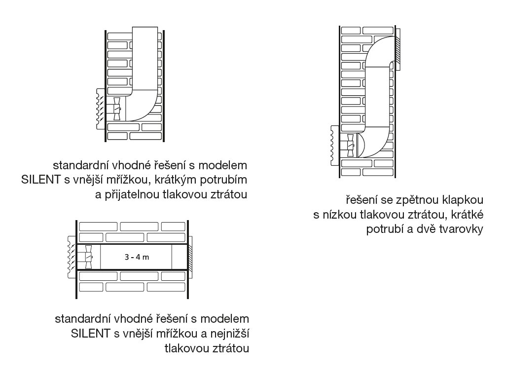 Ventilátory jsou vhodné pro krátké vzduchovody s nízkou tlakovou ztrátou nebo k odvětrání přímo přes stěnu. Variantu R je možné spouštět tlačítkem.