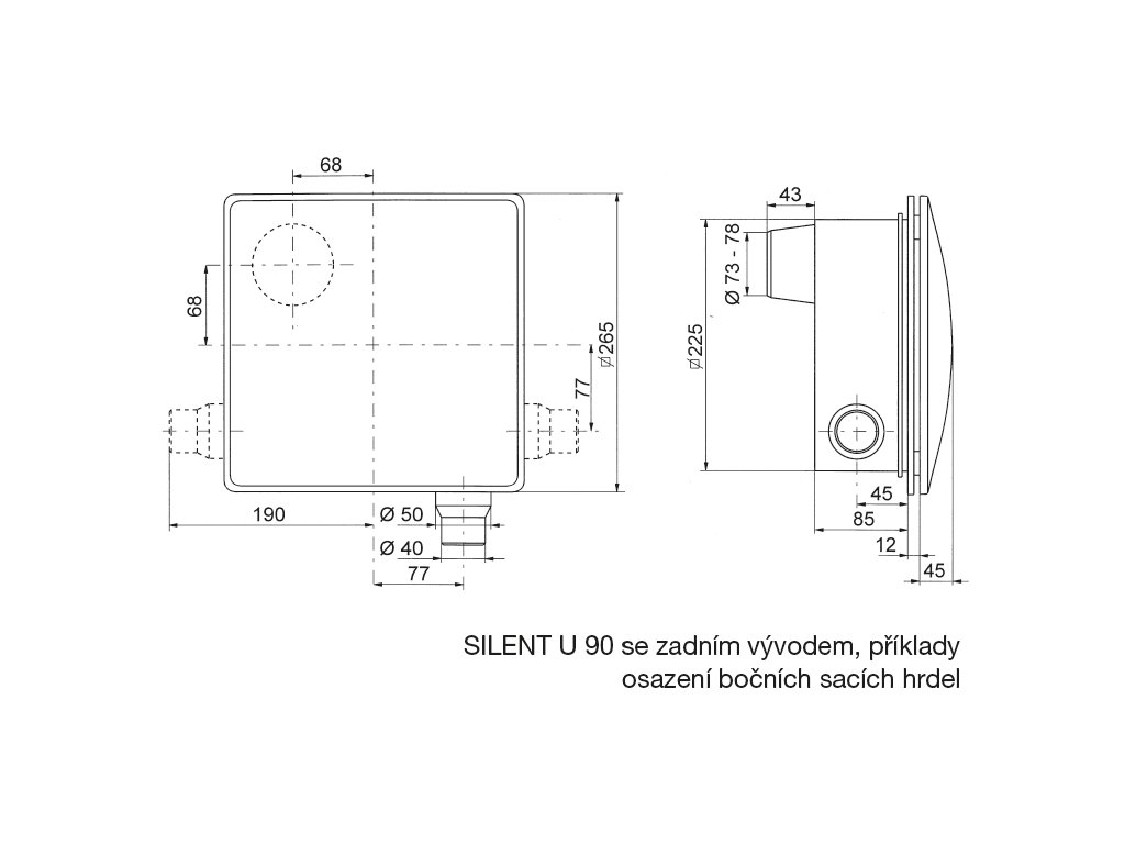 SILENT U 90 obsahuje jeden nástavec pro odsávání vedlejších prostor, další je možno objednat.