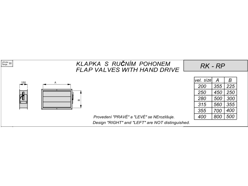 Listy klapek jsou souběžné a spřažené. Při otevírání jedné strany druhá strana zavírá. Ovládání lze montovat na libovolnou stranu klapky. Mají ruční ovládání s mechanickou aretací. Obě spřažené klapky jsou ovládány proporcionálně.