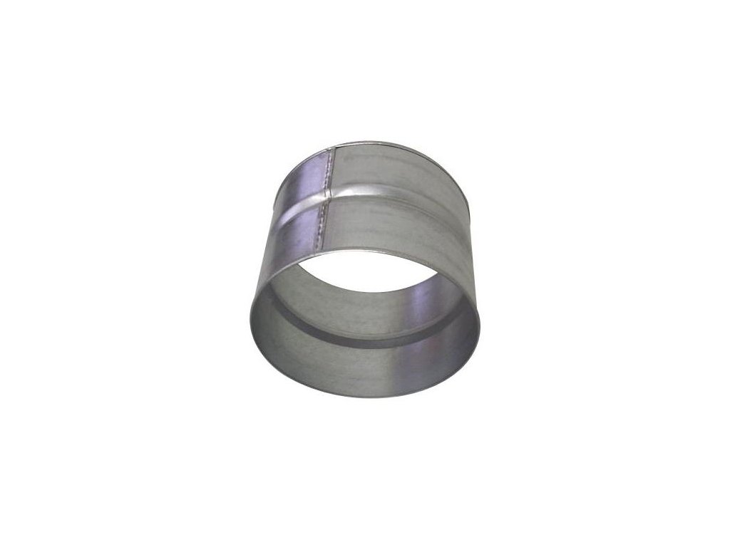 Spojka vnější - ⌀ 125 mm (průměr potrubí), materiál pozink. ocel, ke spojování tvarovek (odboček, kolen, kalhotových kusů), nad ⌀ 1000 mm lze zhotovit na objednávku, rozměry 95 × 125 mm (Š×V), hmotnost ~ 0,58 kg
