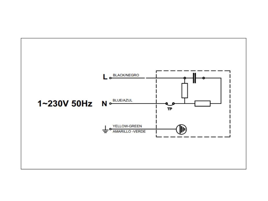 - Motor je asynchronní, s kotvou nakrátko, s rozběhovým kondenzátorem a s tepelnou ochranou. Maximální provozní teplota je 70 ˚C, třída izolace F, krytí IP44. Z ventilátoru je vyveden 3-žilový kabel, svorkovnice není v dodávce.