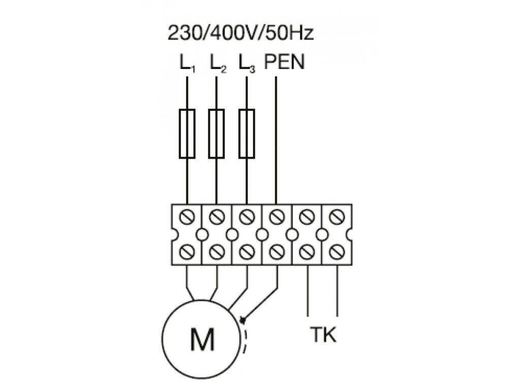 - Svorkovnice je standardně z černého plastu, je volně připojena na přívodním kabelu od motoru a je ji možno samořeznými šrouby přišroubovat na dobře přístupné místo na skříni. Délka kabelu cca 0,5 m, krytí IP55.