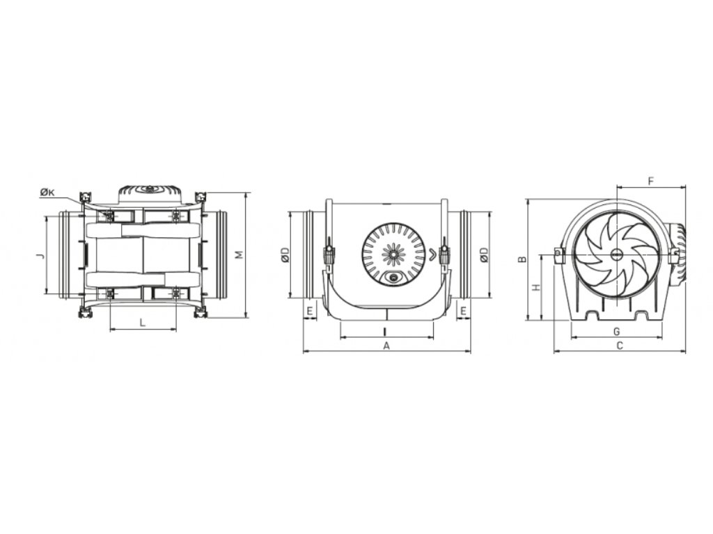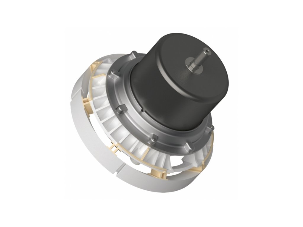- EC motor s tepelnou ochranou proti přetížení. Ložiska jsou kuličková s tukovou náplní na dobu životnosti. Třída izolace B. Oběžné kolo je vyrobeno z plastu, optimalizovaný design zvyšuje výkon a snižuje hluk.
