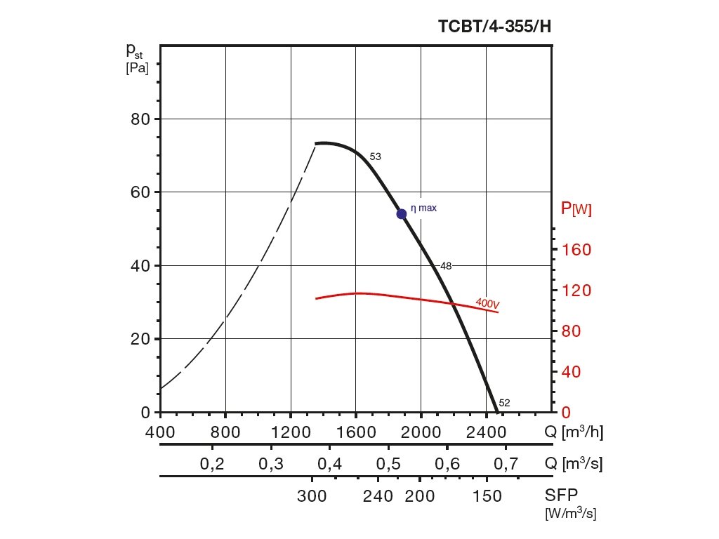 Oběžné kolo je vyrobeno ze slitiny Al. Oběžné kolo je staticky a dynamicky vyváženo, rozsah pracovních teplot je v rozmezí od -20° do +55 °C (velikosti 315–710 kromě TCBT/4-710) nebo od -20° do +40 °C (velikost 800–1000 a TCBT/4-710).