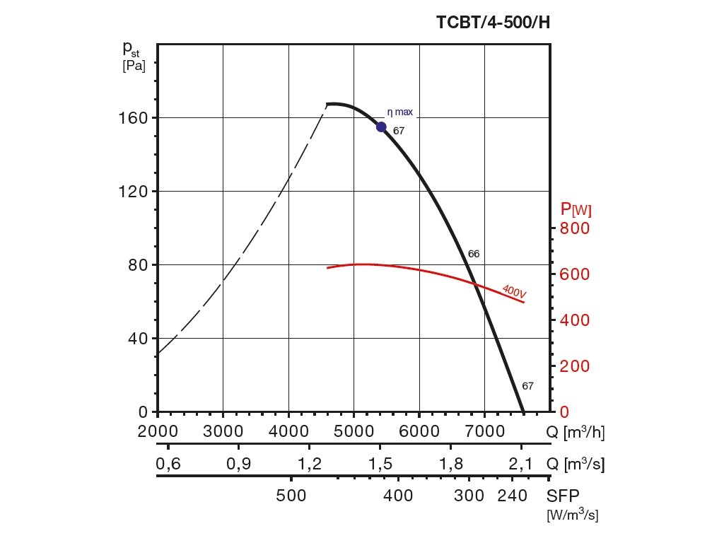 Oběžné kolo je vyrobeno ze slitiny Al. Oběžné kolo je staticky a dynamicky vyváženo, rozsah pracovních teplot je v rozmezí od -20° do +55 °C (velikosti 315–710 kromě TCBT/4-710) nebo od -20° do +40 °C (velikost 800–1000 a TCBT/4-710).
