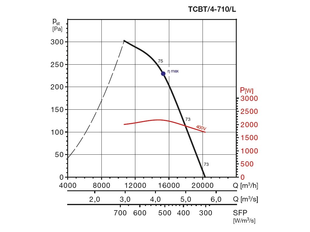 Oběžné kolo je vyrobeno ze slitiny Al. Oběžné kolo je staticky a dynamicky vyváženo, rozsah pracovních teplot je v rozmezí od -20° do +55 °C (velikosti 315–710 kromě TCBT/4-710) nebo od -20° do +40 °C (velikost 800–1000 a TCBT/4-710).