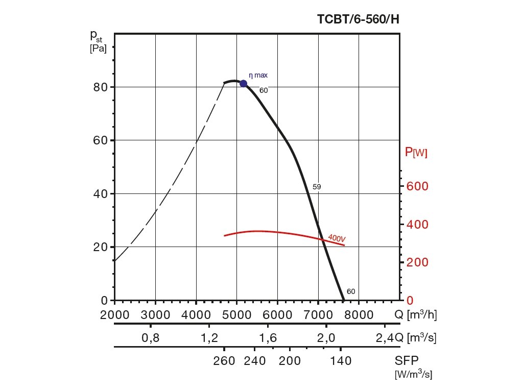 Oběžné kolo je vyrobeno ze slitiny Al. Oběžné kolo je staticky a dynamicky vyváženo, rozsah pracovních teplot je v rozmezí od -20° do +55 °C (velikosti 315–710 kromě TCBT/4-710) nebo od -20° do +40 °C (velikost 800–1000 a TCBT/4-710).