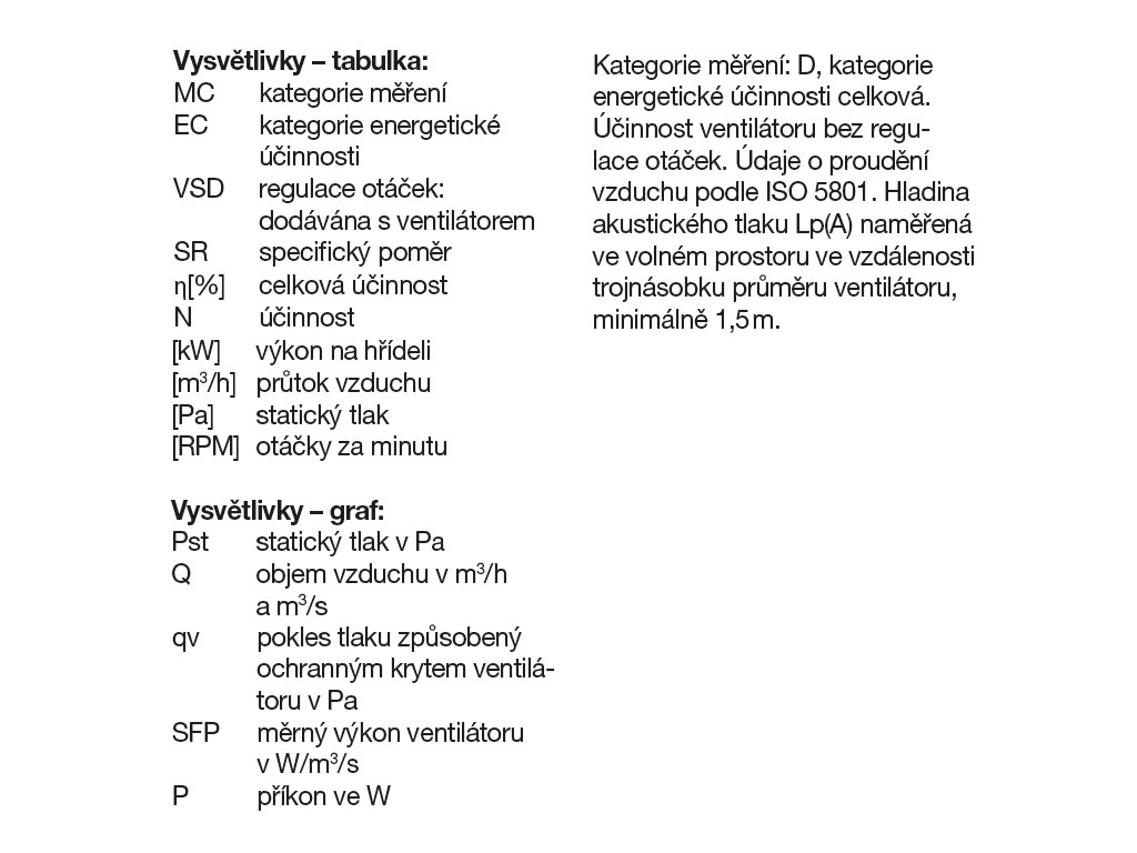 Hluk uvedený ve výkonových charakteristikách odpovídá hodnotám akustického tlaku ve volném poli ve vzdálenosti trojnásobku průměru oběžného kola (minimálně 1,5 m).