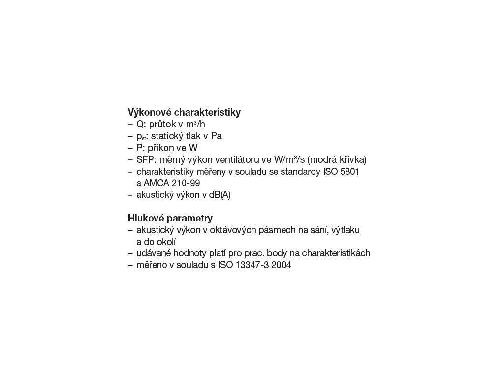 EC motor s tepelnou a elektronickou ochranou proti přetížení. Ložiska kuličková. Třída izolace B, krytí IP44. Pracovní teplota -20 °C až +40 °C.