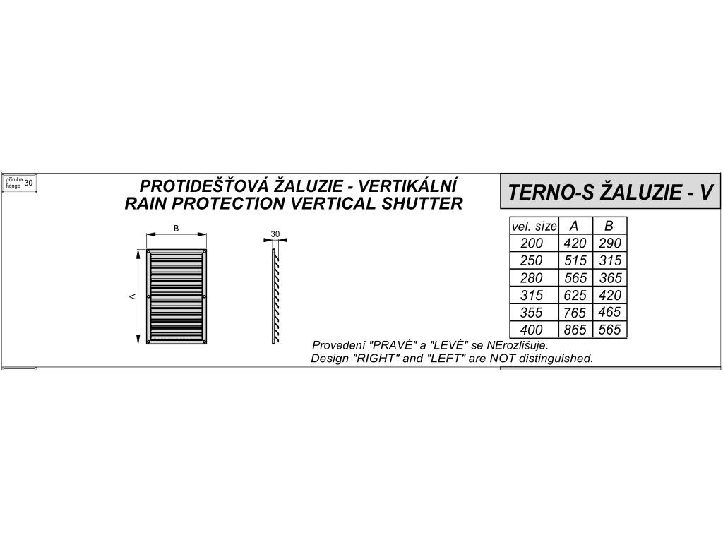 Žaluzie najde své využití jako prostředník pro sání i výtlak pro větrací systém TERNO-S. Vyrobena je z kvalitního pozinkovaného plechu
