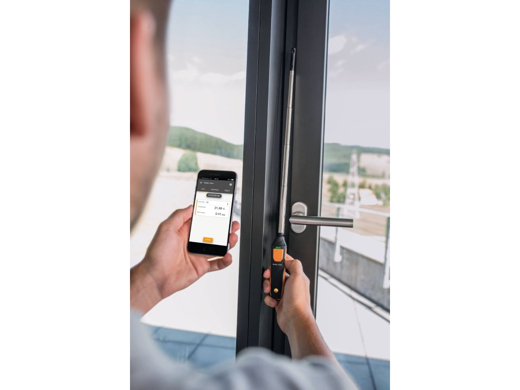 Kompaktní sada klimatizace obsahuje čtyři měřicí přístroje ovládané aplikací pro nejvýznamnější měřicí úlohy specialistů ventilačních a klimatizačních systémů: termický anemometr testo 405i, vrtulkový anemometr testo 410i, termohygrometr testo 605i a infračervený teploměr testo 805i. Ve spojení s chytrým telefonem nebo tabletem může být použita pro měření teploty vzduchu, povrchové teploty, vlhkosti vzduchu, rychlostí proudění vzduchu a objemových proudění u klimatizačních zařízení a systémů. Uživatelé mohou pohodlně odečítat naměřené hodnoty pomocí aplikace Chytré sondy testo (testo Smart Probes) nainstalované v chytrém telefonu/tabletu. V aplikaci mohou být parametry měření (např. vlhkost nebo teplota) vymazány, přidány nebo jejich pořadí změněno jediným kliknutím. Stejně tak rychle je možné měnit zobrazované parametry. Aplikace obsahuje nabídky včetně identifikace rizika vzniku plísní; automatického výpočtu objemového průtoku na vyústkách nebo v potrubích jednoduchou parametrizací vyústky či průřezu potrubí (rozměry a geometrie). Zprávy naměřených dat mohou být posílány přímo ve formátu PDF nebo v Excelu. V praktickém Chytrém pouzdře Testo mohou být měřicí přístroje pohodlně přepravovány