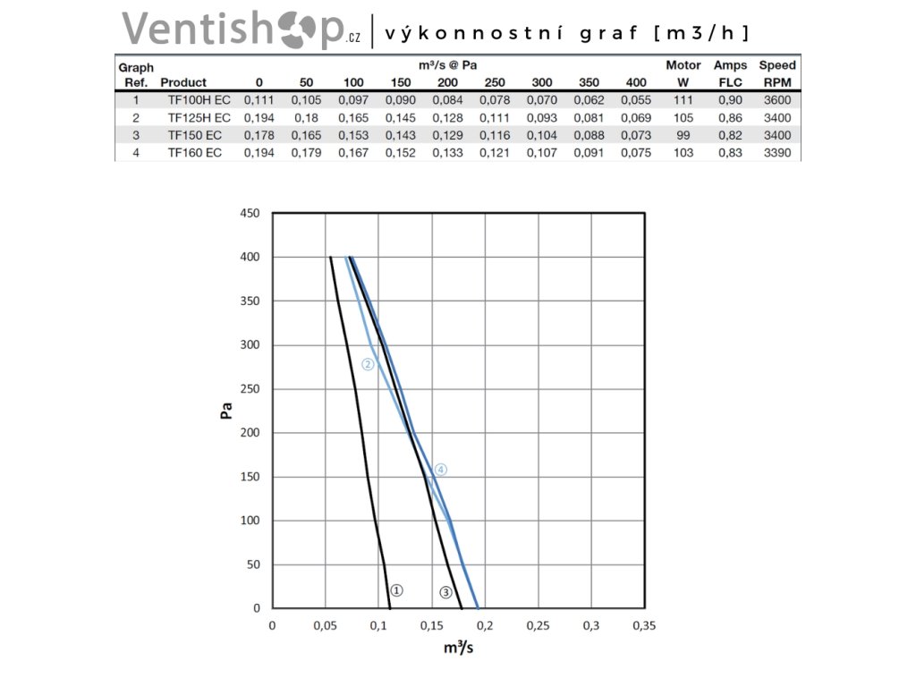 max. průtok 698 m3/h, příkon 103 W,