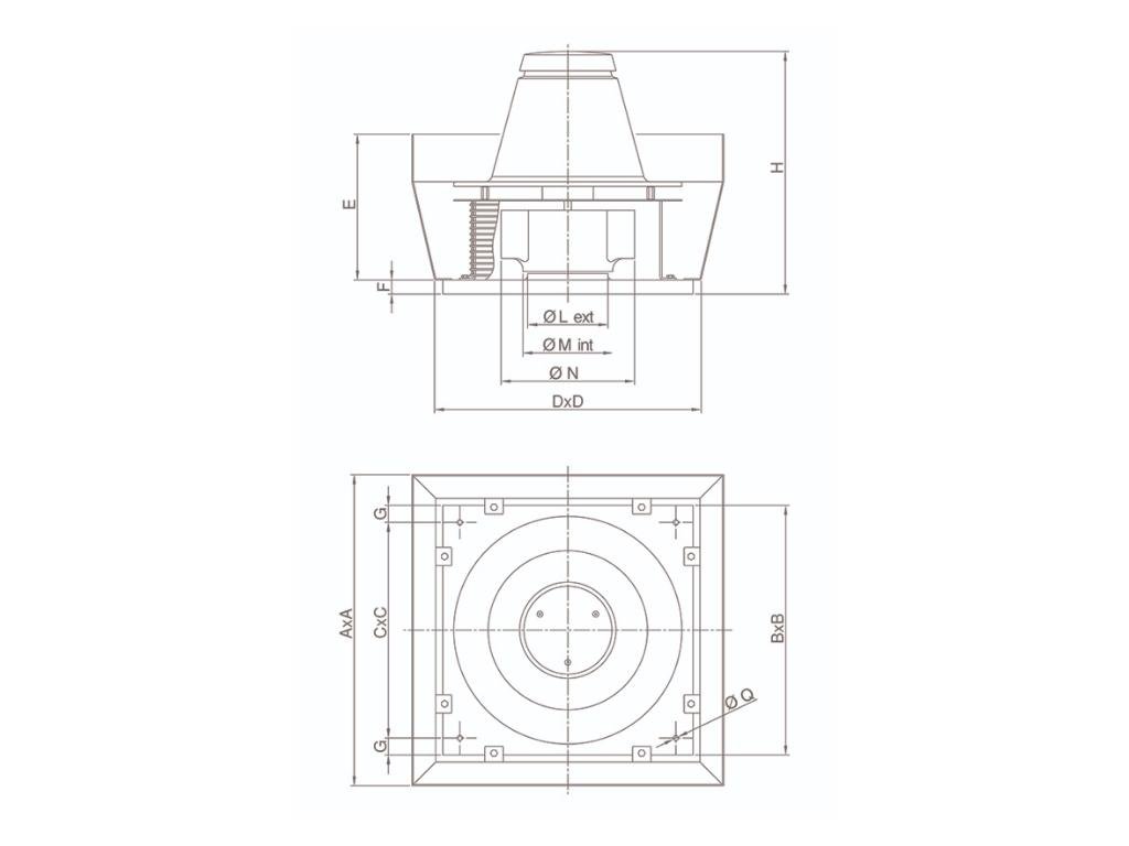 Torrette TRT 150 E-V 6P třífázový střešní ventilátor s vertikálním výfukem