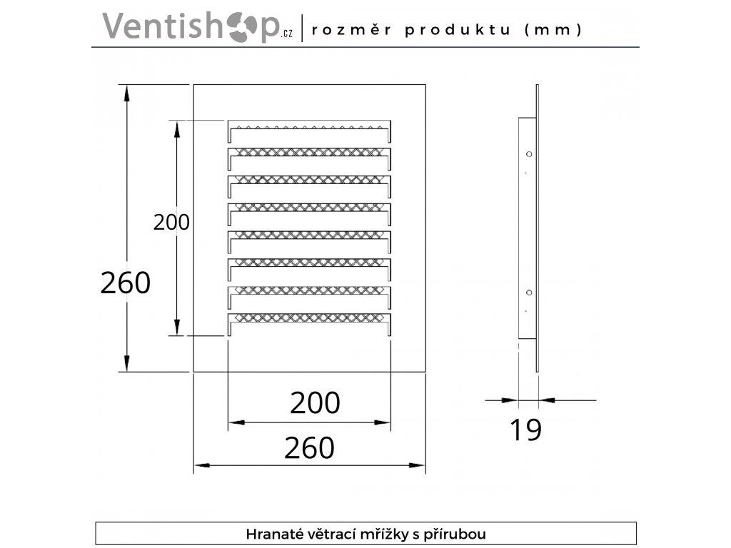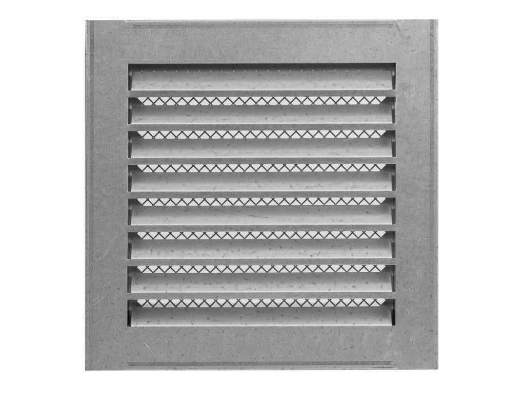 Ventilační mřížka - s přírubou 200x200 mm, barva šedá/stříbrná (bez nátěru), materiál pozink. ocel, kvalitní zpracování, s pevnou protidešťovou žaluzií, čtvercový tvar, předpokládané umístění (fasáda, zdivo - průmyslových i domácích budov), elegantní design, jemné síto proti ptactvu / hlodavcům, jednoduchá instalace, vysoce odolná konstrukce, rozměry 260×260 mm (Š×V), hmotnost 0,69 kg