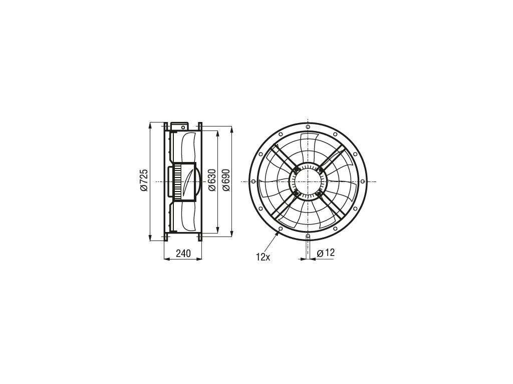 TXBR/4-630 průmyslový jednofázový potrubní axiální ventilátor