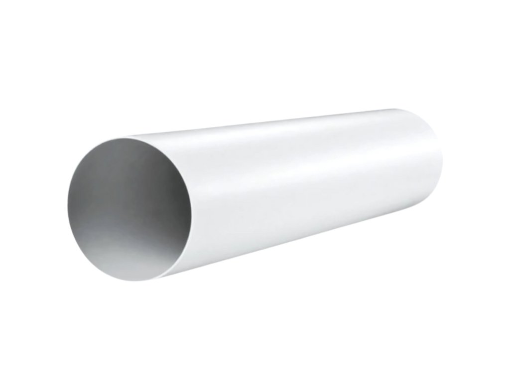Kruhové ventilační potrubí - ⌀ 125 mm (průměr), hladký povrch, jednoduchá + rychlá montáž, délka 1 m, lze zkrátit, teplotní odolnost 0 °C až +50 °C, umístění (do koupelen, WC, kuchyní), obvyklé napojení (ventilátor, rekuperace, digestoře), rozměry 1000 × 125 mm (Š × V), hmotnost ~ 1,46 kg