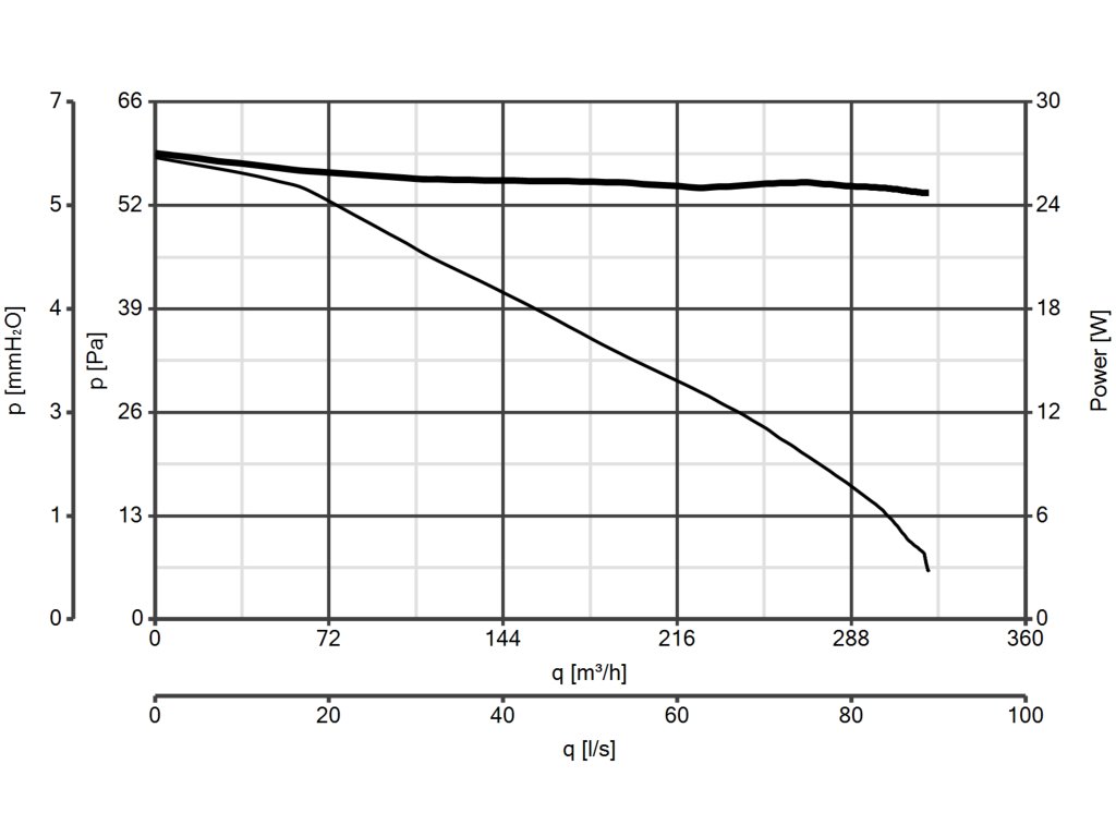 - Konstruován pro odsávání přes stěnu, nebo montáž do krátkého potrubí (maximální délka potrubí cca. 3 metry s dvěma 90° koleny)