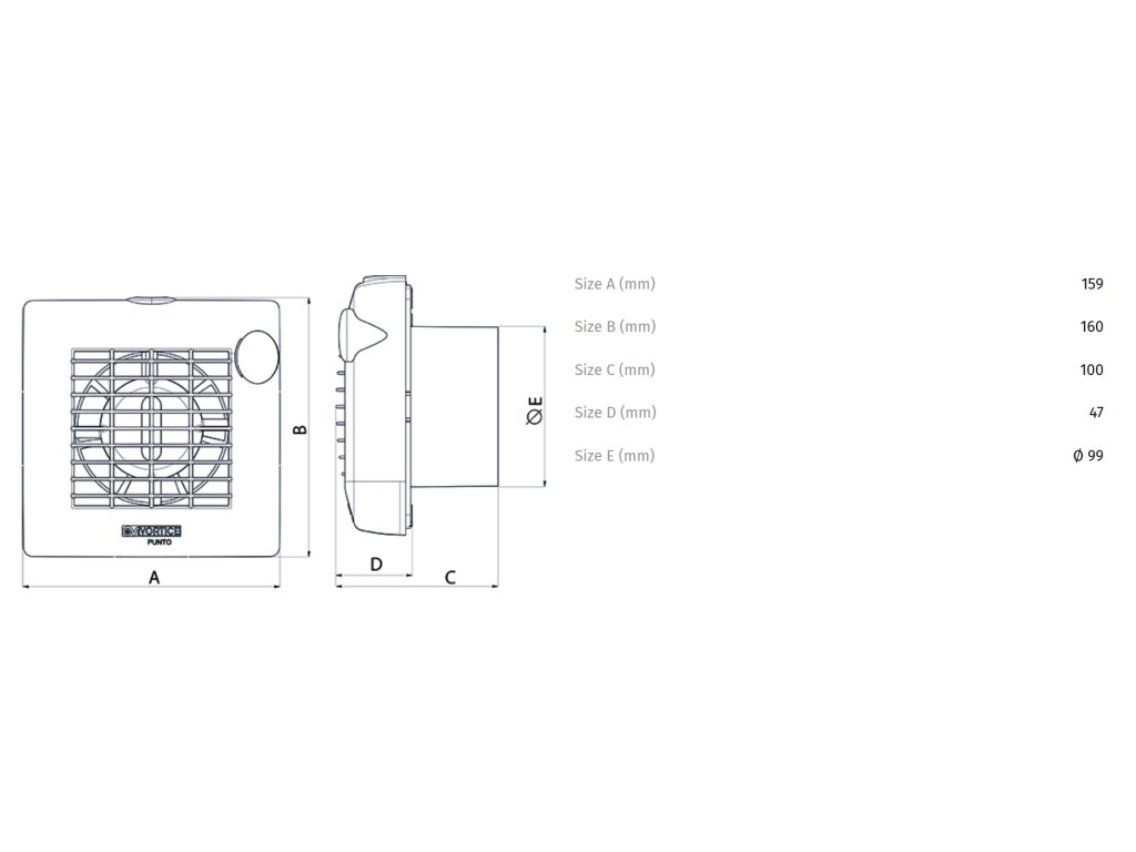 Tichý ventilátor od italského výrobce Vortice s hlučností 37,5 dB(A). Ventilátor je vybaven nastavitelným časovým doběhem (2 až 30 minut) a kuličkovými ložisky s životností 30 000 hodin. Vhodný pro připojení na potrubí s délkou do 4 metrů a průměrem 100 mm. Ventilátor je vyroben z kvalitního UV ABS plastu. Všechny komponenty jsou 100% recyklovatelné. Ventilátor lze namontovat na stěnu, strop nebo do skla pomocí příslušenství.