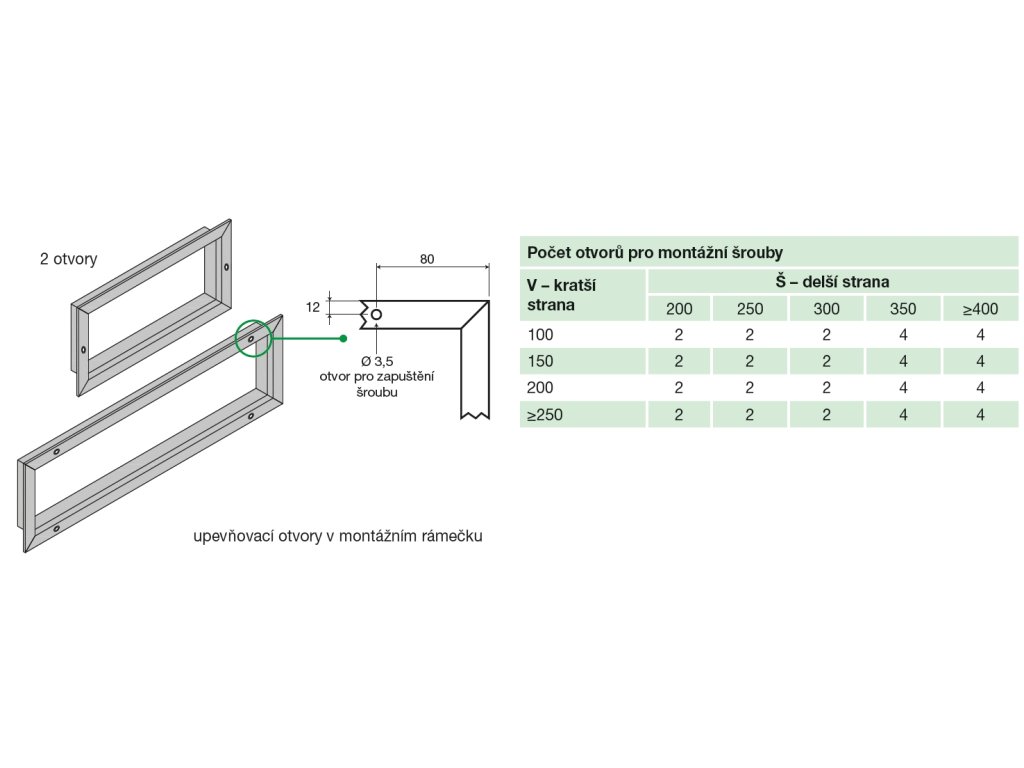 mřížek základní řady se provádí pomocí upevňovacích rámečků na potrubí nebo na stěnu. Výška instalace 2,5–3,5 m