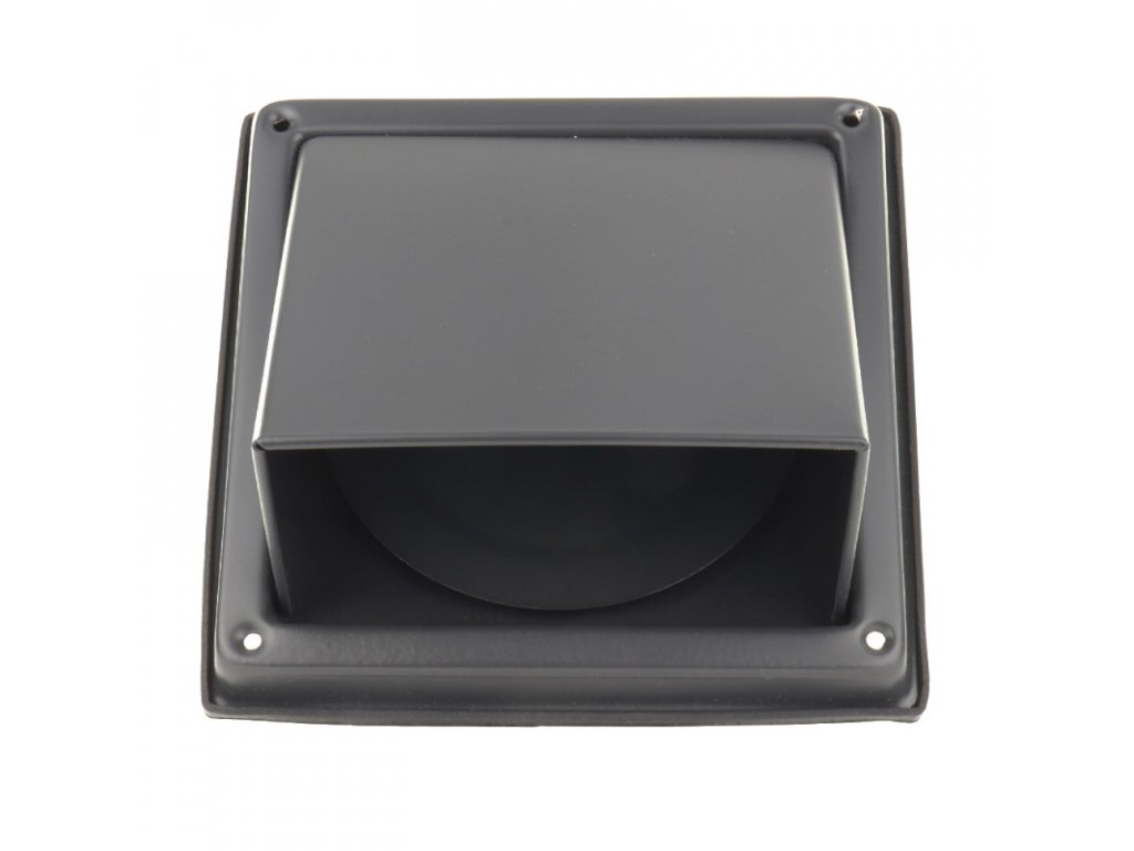 materiál nerez (kov), barva černá/antracit, příruba, protidešťový panel (ochrana vzduchovodu před vniknutím vody),