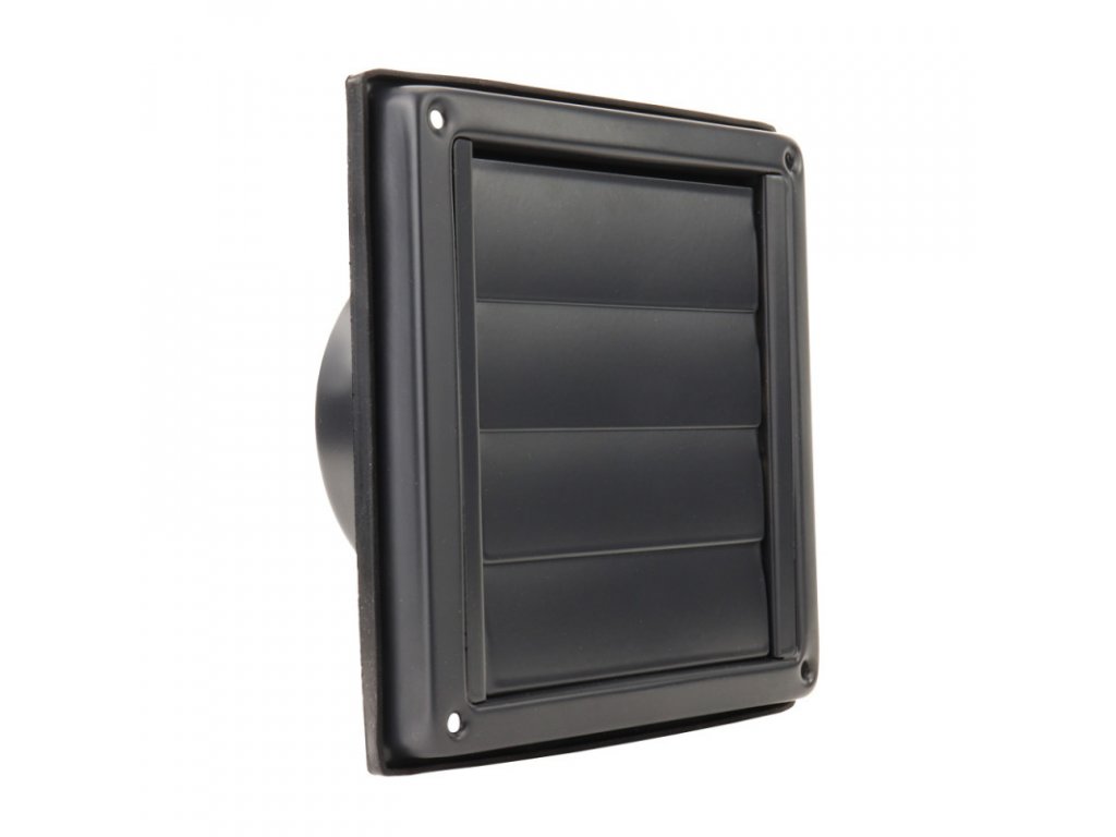materiál nerez (kov), barva černá/antracit, příruba, samotížné/pohyblivé/protidešťové/gravitační lamely, otvory pro snadnou instalaci,