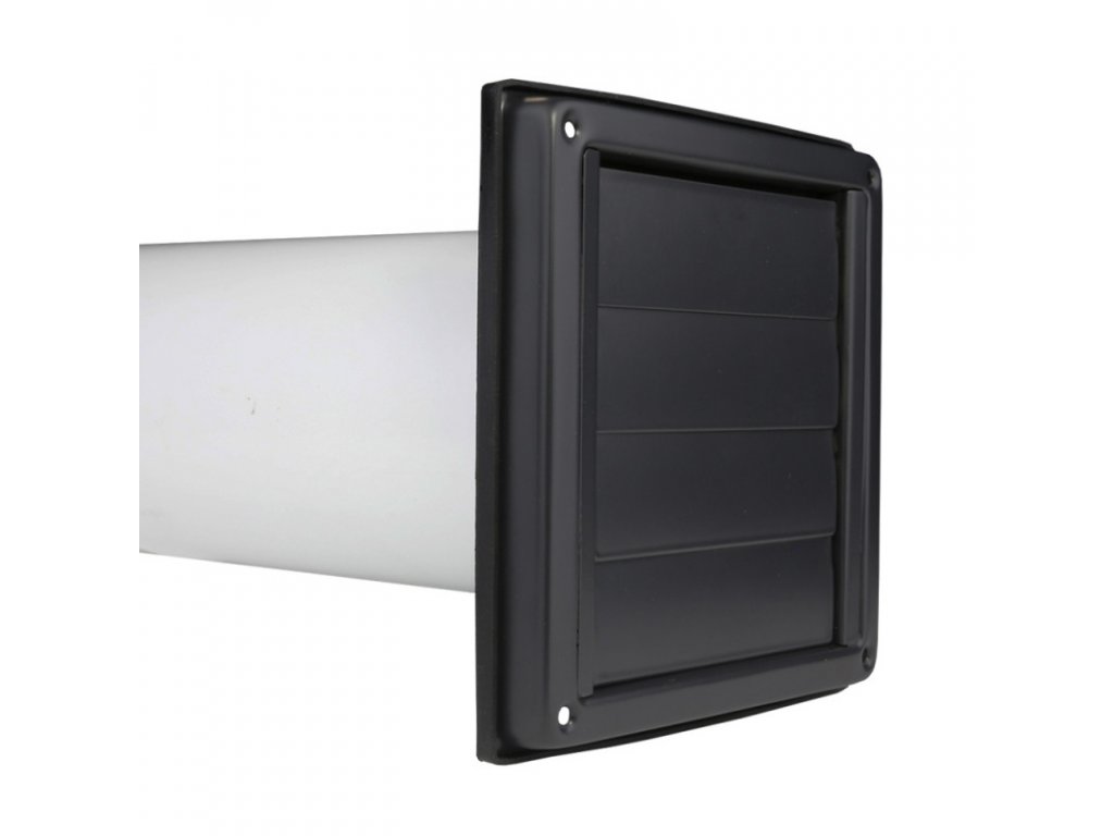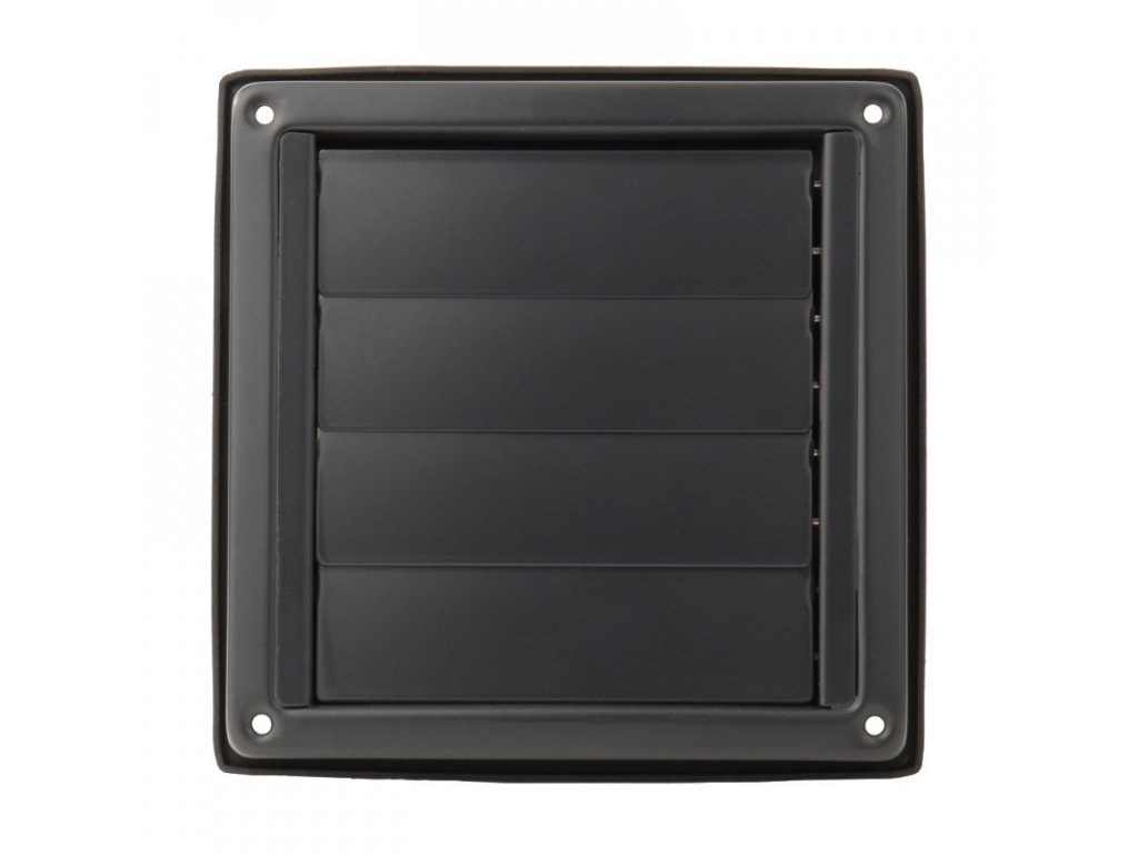 materiál nerez (kov), barva černá/antracit, příruba, samotížné/pohyblivé/protidešťové/gravitační lamely, otvory pro snadnou instalaci,