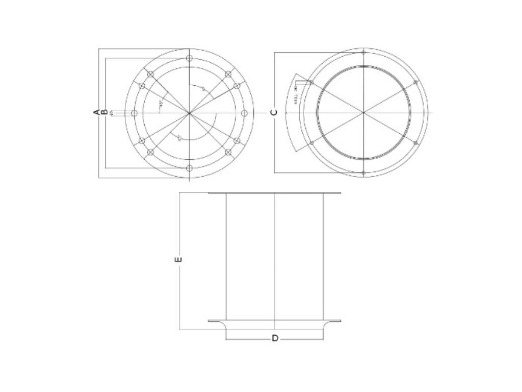 Sací nástavec C-RA 37 ATEX určený pro nevýbušné průmyslové radiální ventilátory Vortice C ATEX. Slouží jako příruba na potrubí pro sací stranu ventilátoru.