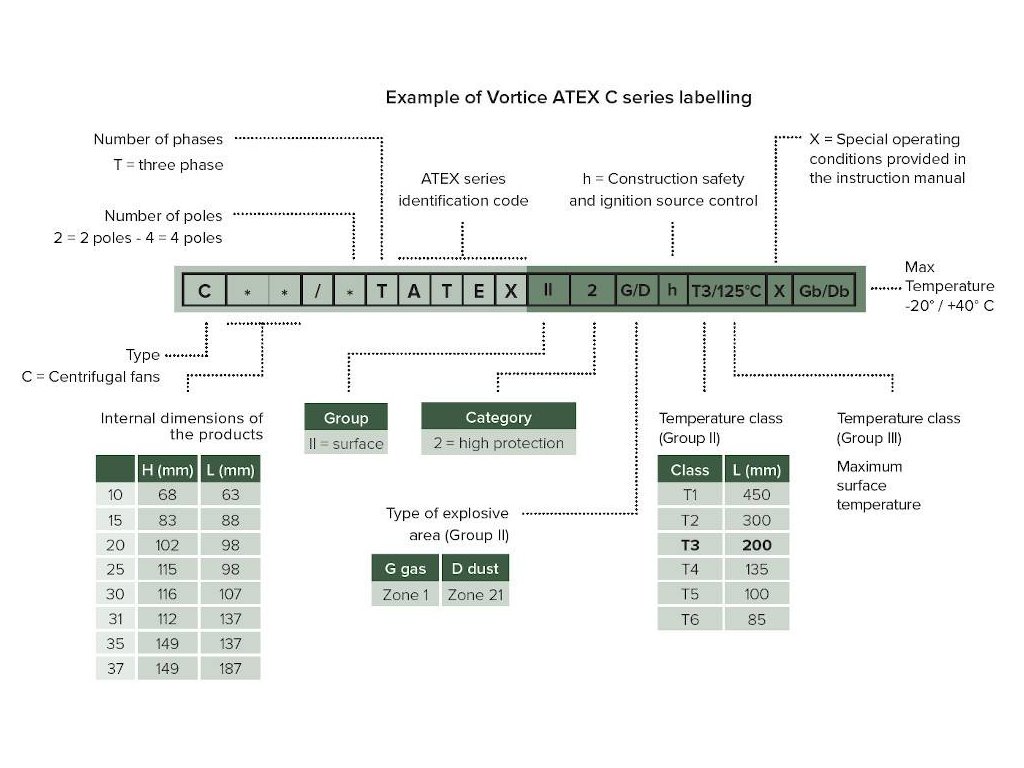 - Ventilátory ATEX jsou vyrobeny v souladu s normou EN 14986 (navrhovaní ventilátorů určených do potenciálně výbušných prostředí)
