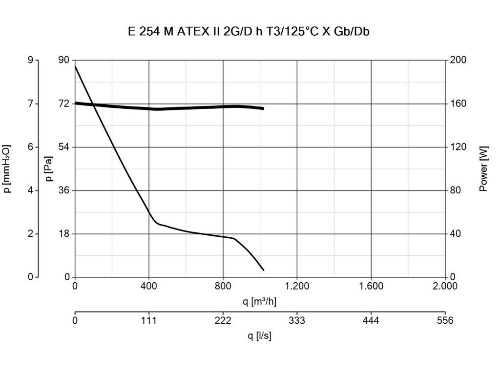jednofázový axiální ventilátor Italského výrobce Vortice E ATEX s kódovým označením E 254 M ATEX II 2G/D H T3/125°C X GB/DB určený do prostorů, kde hrozí nebezpečí výbuchu plynů, nebo prachových částic. Ventilátor s přímým výfukem určený pro montáž do stěny, stropu nebo také do kruhového potrubí.