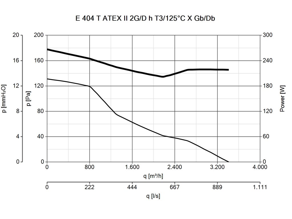 3-fázový axiální ventilátor Italského výrobce Vortice E ATEX s kódovým označením E 404 T ATEX II 2G/D H T3/125°C X GB/DB určený do prostorů, kde hrozí nebezpečí výbuchu plynů, nebo prachových částic. Ventilátor s přímým výfukem určený pro montáž do stěny, stropu nebo také do kruhového potrubí.