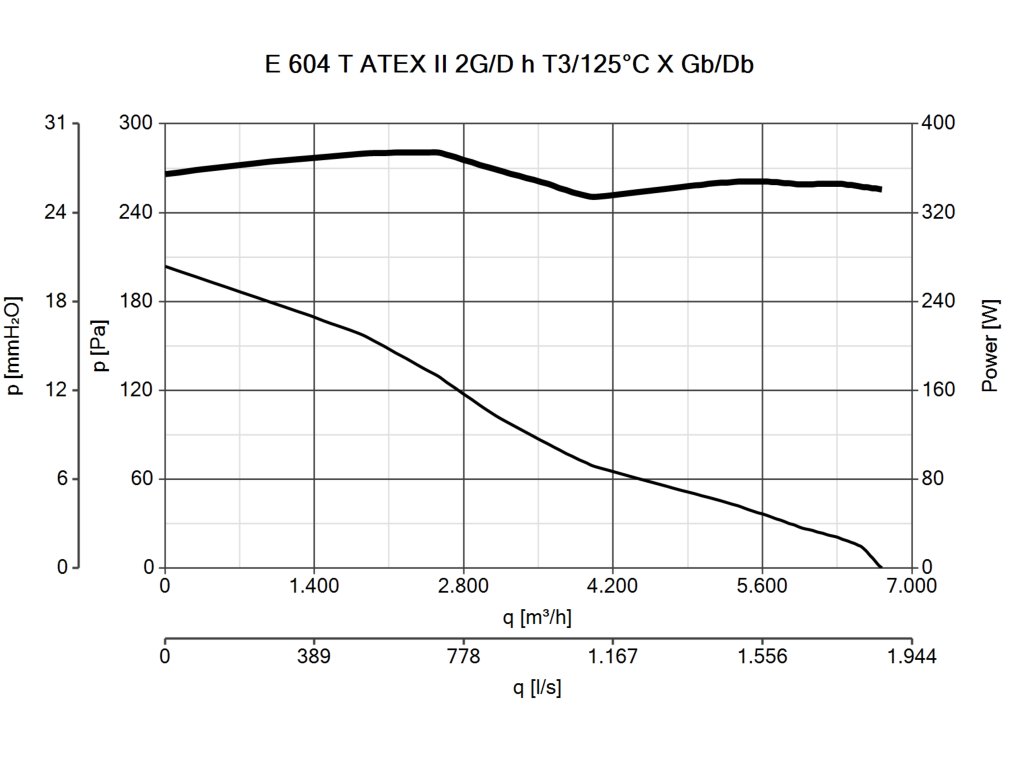 3-fázový axiální ventilátor Italského výrobce Vortice E ATEX s kódovým označením E 604 T ATEX II 2G/D H T3/125°C X GB/DB určený do prostorů, kde hrozí nebezpečí výbuchu plynů, nebo prachových částic. Ventilátor s přímým výfukem určený pro montáž do stěny, stropu nebo také do kruhového potrubí.