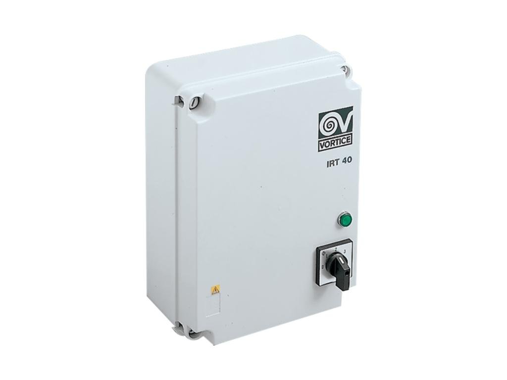 Třístupňový regulátor otáček Vortice IRT 40 určený pro třífázové průmyslové ventilátory. Přepínač 0/1/2/3. Maximální zátěž 4,5 A