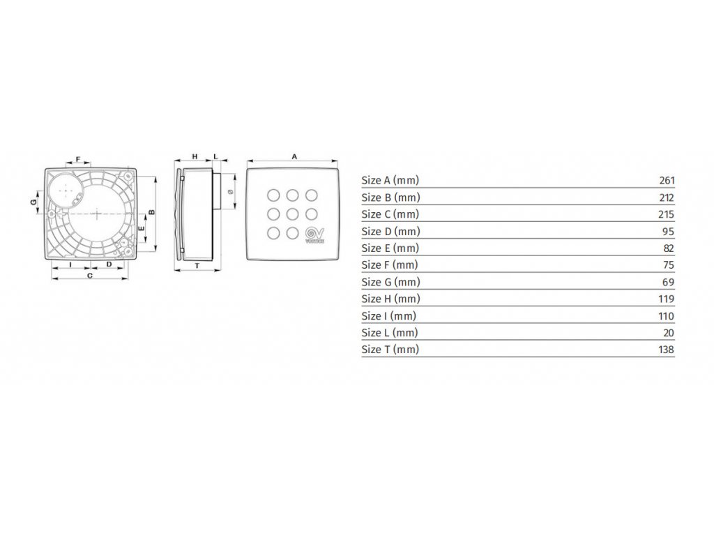 Vortice Quadro MEDIO T stěnový radiální ventilátor do koupelny s časovým doběhem