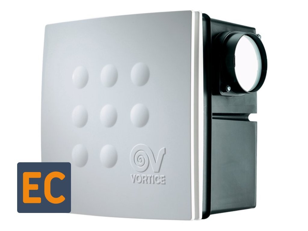 Vortice Quadro MICRO 100 I T ES úsporný radiální ventilátor k zabudování s EC motorem a doběhem