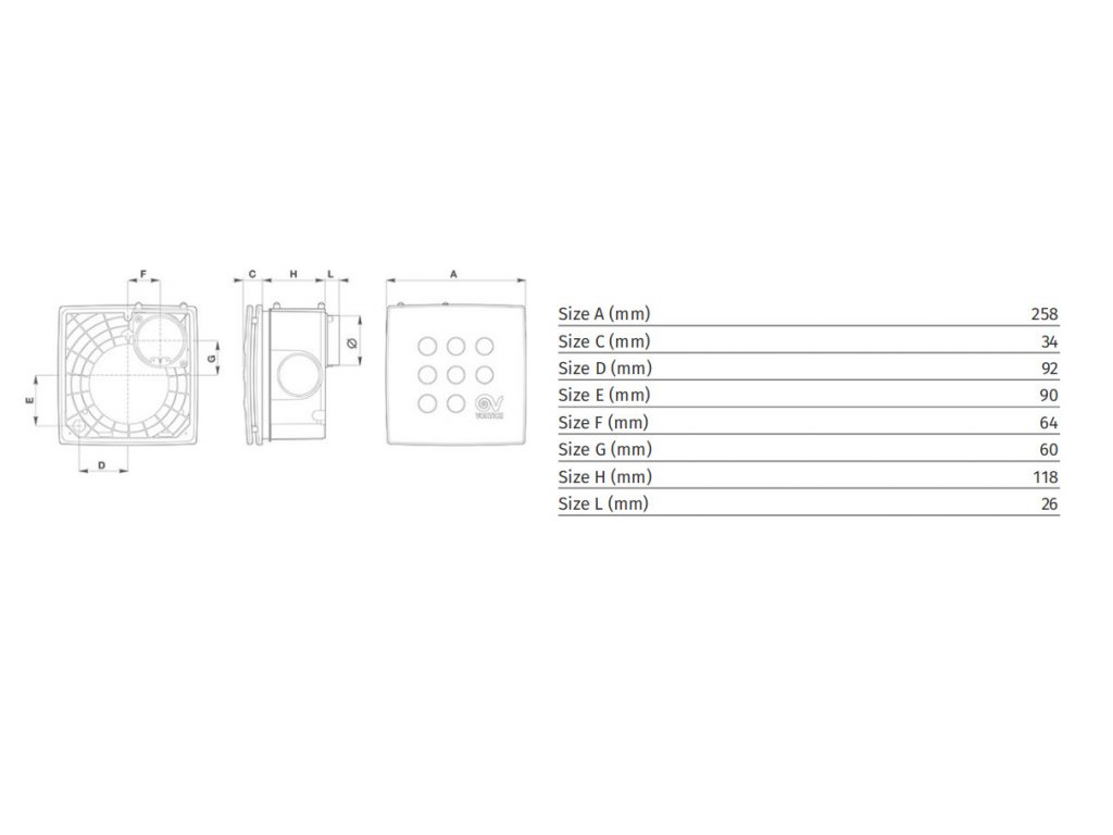 - Zabudovaná zpětná klapka pro zabránění zpětného proudění vzduchu, pokud ventilátor není v provozu.